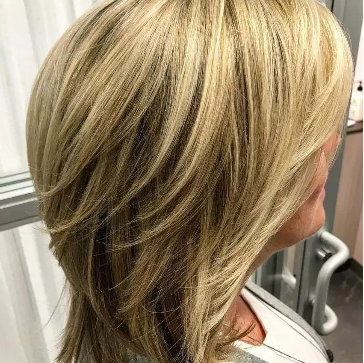 Les coiffures pour les femmes de plus de 60 ans peuvent être vives et ludiques ! Essayez les reflets blonds populaires et les couches impertinentes. De plus, donnez aux couches un aspect plumeux pour rafraîchir le look.